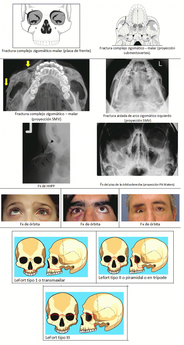 El 60 a 70% de las fracturas faciales incluyen lesión de las órbitas, siendo que las excepciones son las fracturas de los HHPP, de los arcos zigomáticos aislados y la fractura de LeFort I.
